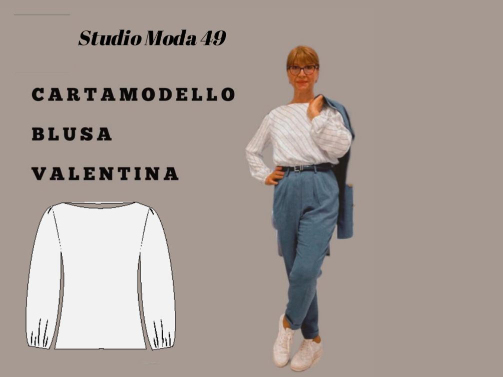 Blusa Valentina, caratterizzata da uno scollo a barchetta e maniche rifinite con elastico ai polsini. Questo modello, pensato per un'eleganza raffinata, può essere realizzato con tessuti leggeri come cady, crêpe georgette, satin leggero o crêpe de Chine. Perfetta per occasioni speciali o per un tocco di stile in occasioni più informali, la Blusa Valentina si adatta con grazia a varie situazioni.